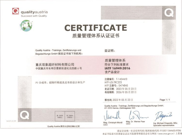 公司堅(jiān)持以創(chuàng)新、協(xié)調(diào)、綠色、開(kāi)放、共享新發(fā)展理念為引領(lǐng),以高質(zhì)量發(fā)展為目標(biāo)定位,全力打造現(xiàn)代化先進(jìn)制造業(yè)企業(yè)。公司是中國(guó)塑料人造革合成革制造行業(yè)排頭兵企業(yè)、高新技術(shù)企業(yè)、專(zhuān)精特新企業(yè)、重慶市數(shù)字化車(chē)間,擁有省級(jí)技術(shù)研發(fā)中心,先后承擔(dān)并完成了“國(guó)家863計(jì)劃項(xiàng)目”、“江蘇省重大科技成果轉(zhuǎn)化項(xiàng)目”、“中央投資重點(diǎn)產(chǎn)業(yè)振興和技術(shù)改造項(xiàng)目”等國(guó) 家級(jí)、省級(jí)重大科研項(xiàng)目,承擔(dān)了30多項(xiàng)國(guó)家、行業(yè)標(biāo)準(zhǔn)的起草和修訂工作,被中國(guó)塑料加工工業(yè)協(xié)會(huì)授予“中國(guó)超細(xì)纖維合成革創(chuàng)新研發(fā)基地”稱(chēng)號(hào)。 公司于2019年按照技術(shù)領(lǐng)先、智能制造、管理先進(jìn)、環(huán)境友好的要求建設(shè)雙象超纖重慶生產(chǎn)基地,被重慶市政府列為2019年重大招商引資項(xiàng)目。2022年4月“年產(chǎn)3000萬(wàn)米超纖材料一期項(xiàng)目”投產(chǎn)運(yùn)行,2025年二期項(xiàng)目投產(chǎn)運(yùn)行。雙象超纖正沿著“國(guó)際先進(jìn),中國(guó)領(lǐng)先”的目標(biāo)奮勇前行,致力于成為中國(guó)超細(xì)纖維合成革行業(yè)的領(lǐng)導(dǎo)者。